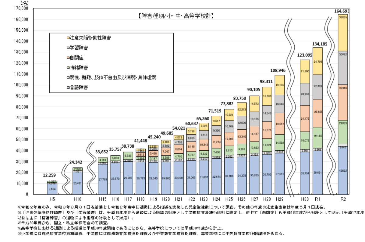 障害児が増えているというよりも、【特別な支援】を受ける選択をした保護者が増えたとも捉えることができます。